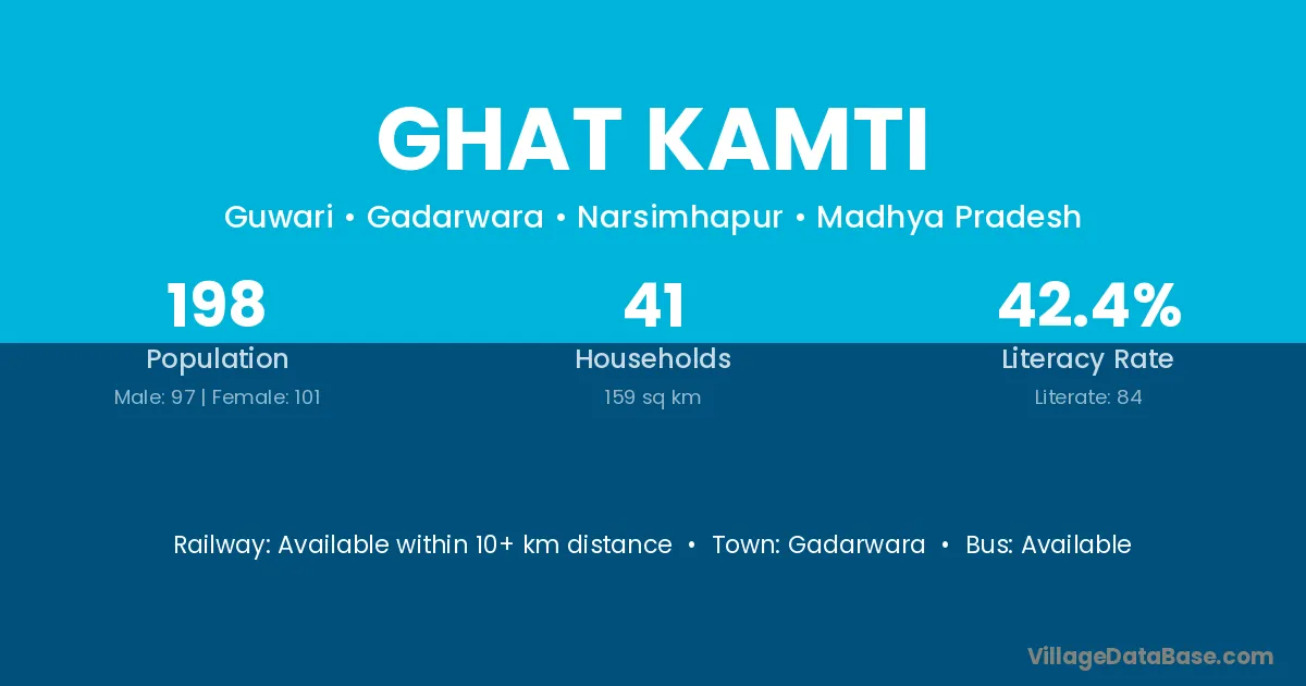 Ghat Kamti village has a total population of 198 people, of which 97 are males and 101 are females.