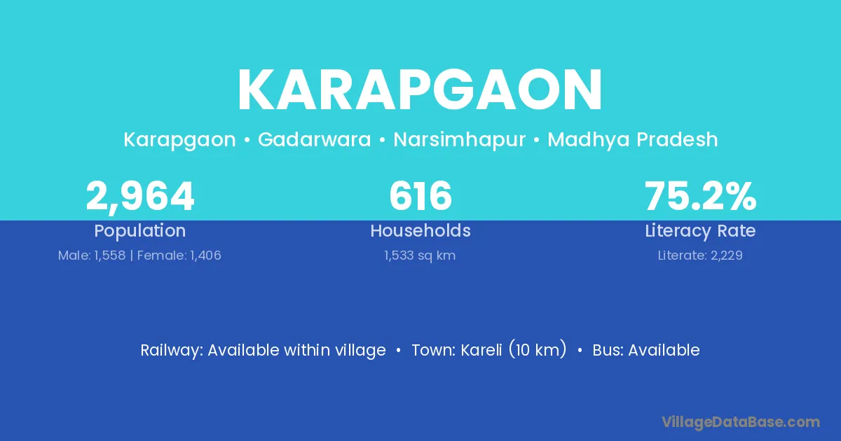 Kareli (10 km) is the nearest town to Karapgaon village for major economic activities and is located approximately 10 km away.
