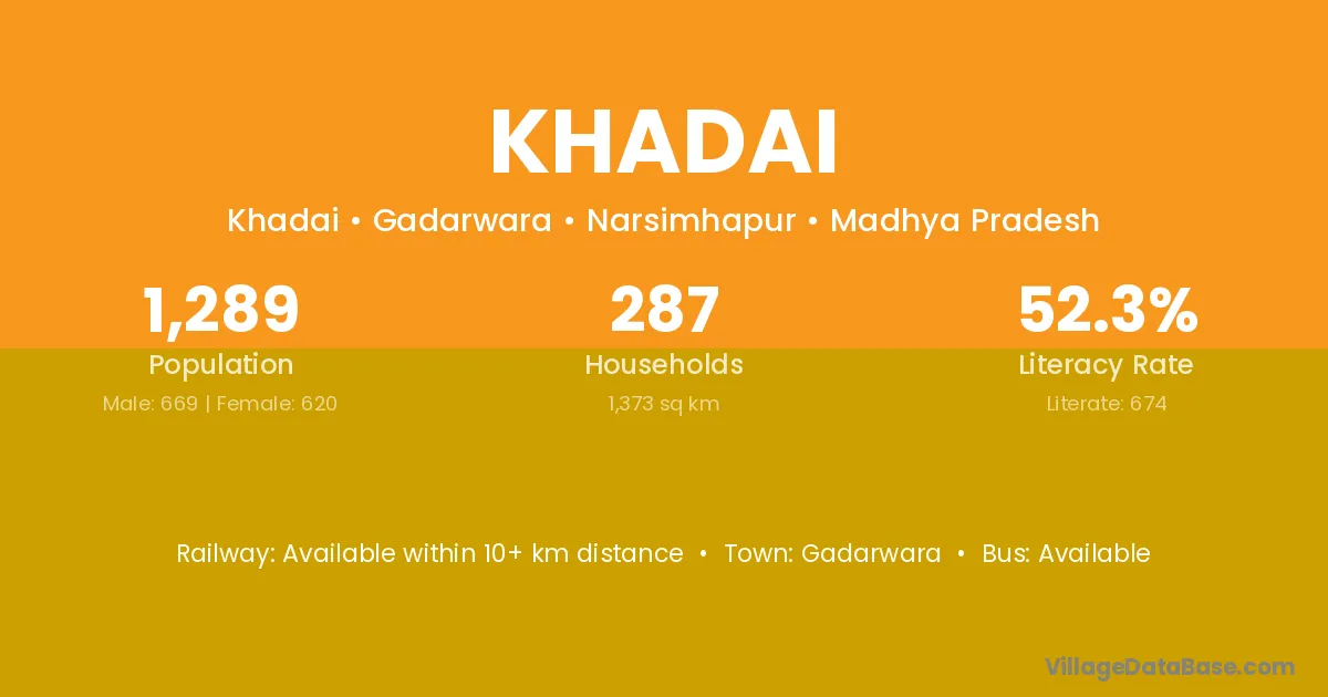Gadarwara is the nearest town to Khadai village for major economic activities