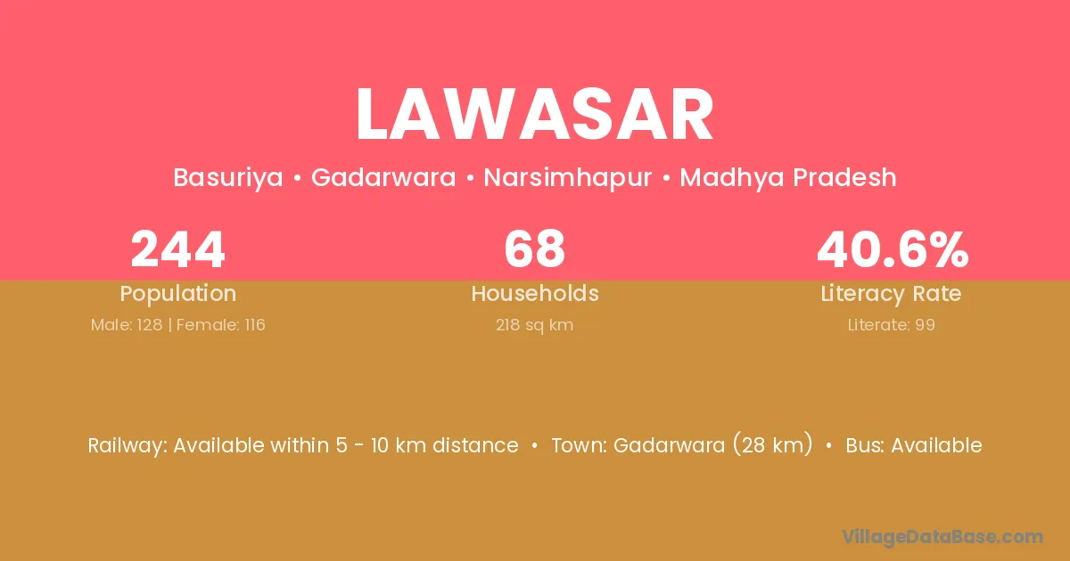 Gadarwara (28 km) is the nearest town to Lawasar village for major economic activities and is located approximately 28 km away.