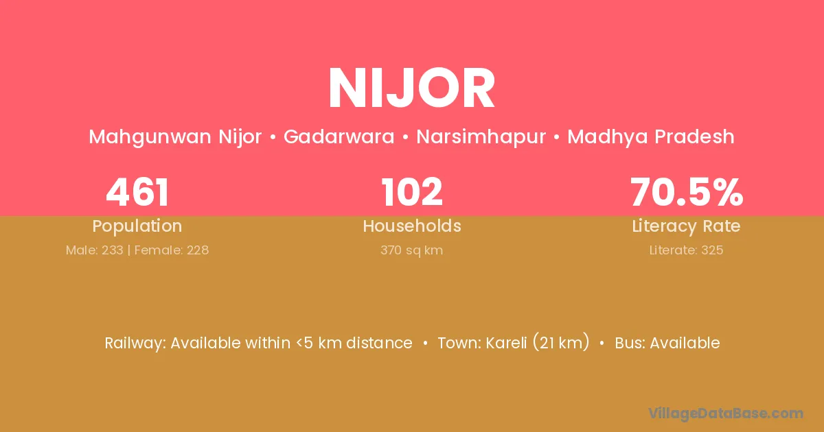 Kareli (21 km) is the nearest town to Nijor village for major economic activities and is located approximately 21 km away.
