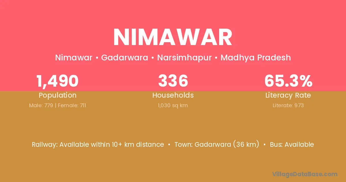 Gadarwara (36 km) is the nearest town to Nimawar village for major economic activities and is located approximately 36 km away.