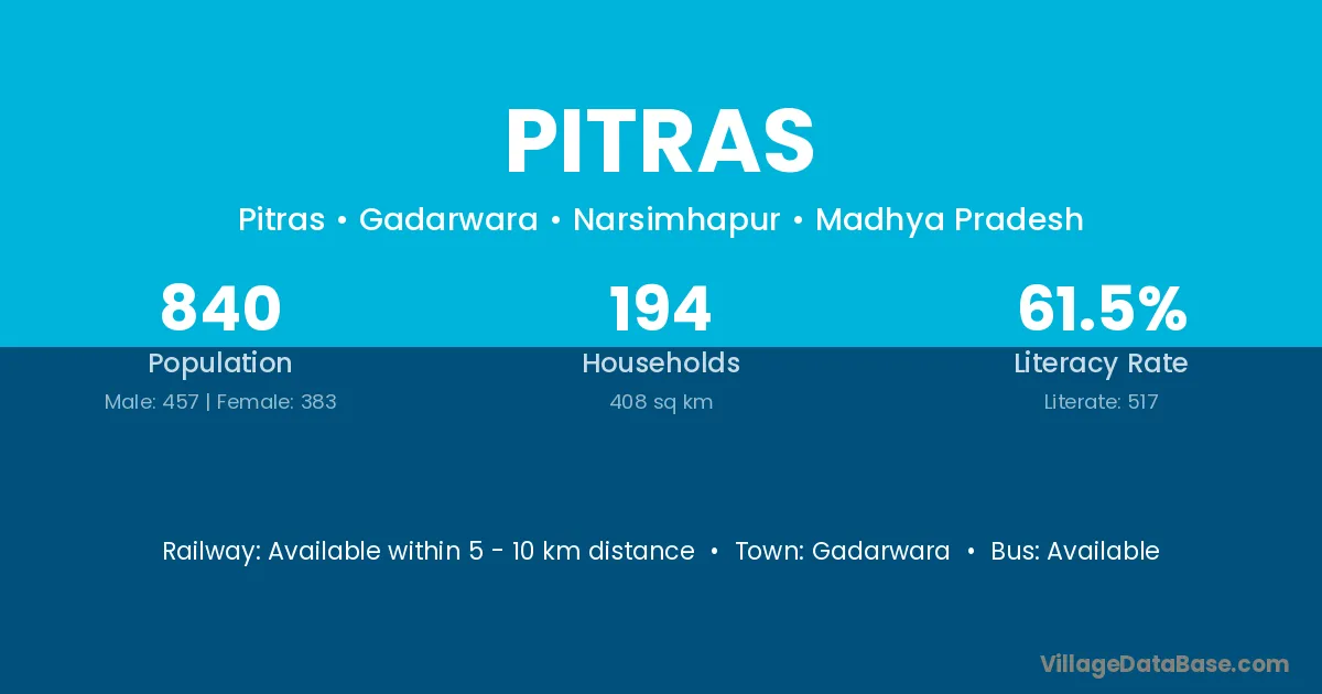 Pitras village is located in the Gadarwara Tehsil of the Narsimhapur district in Madhya Pradesh .