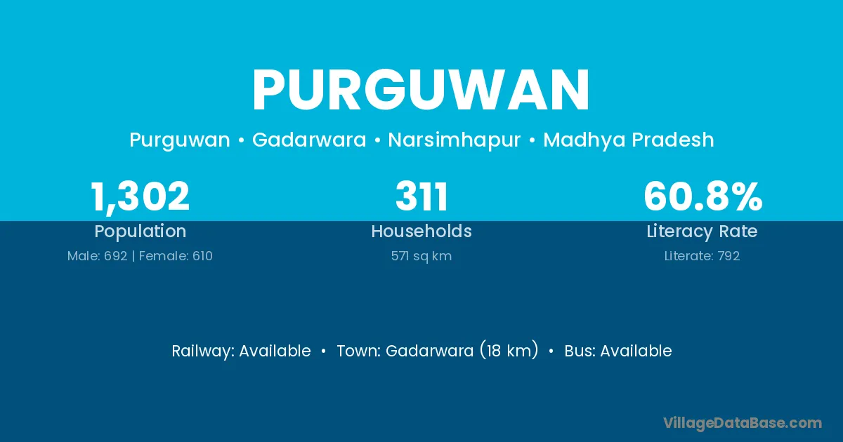 Gadarwara (18 km) is the nearest town to Purguwan village for major economic activities and is located approximately 18 km away.