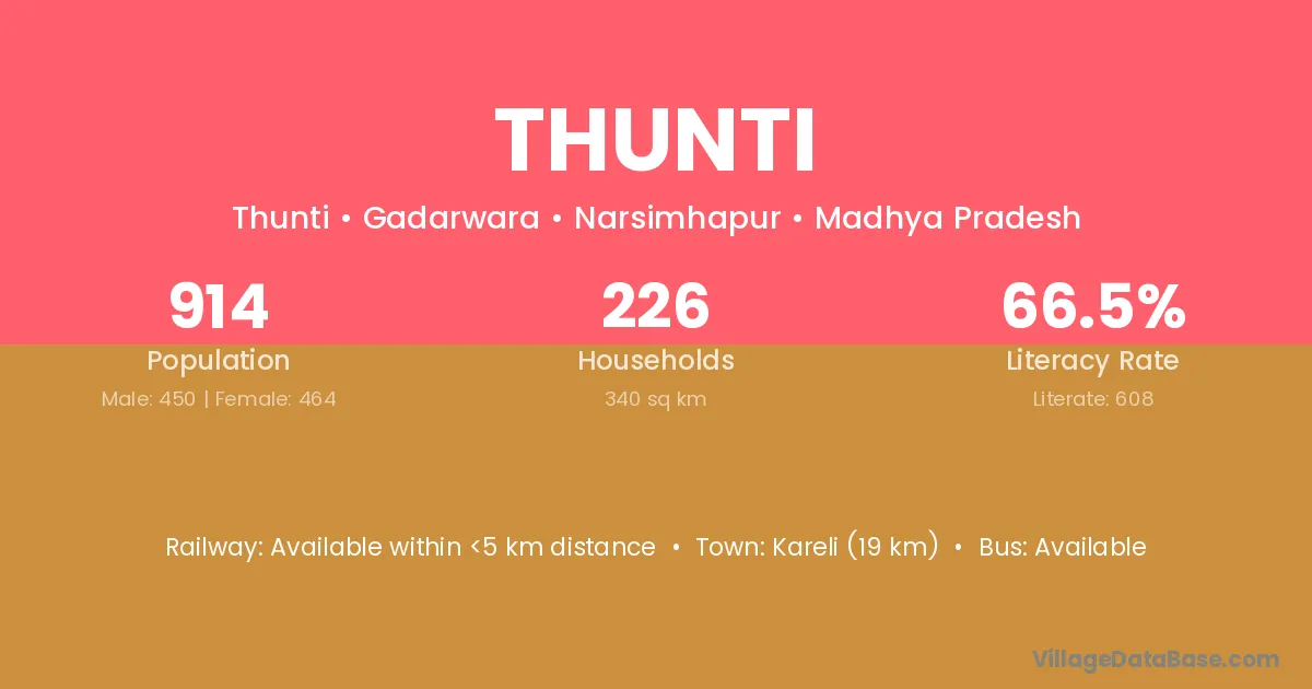 Kareli (19 km) is the nearest town to Thunti village for major economic activities and is located approximately 19 km away.