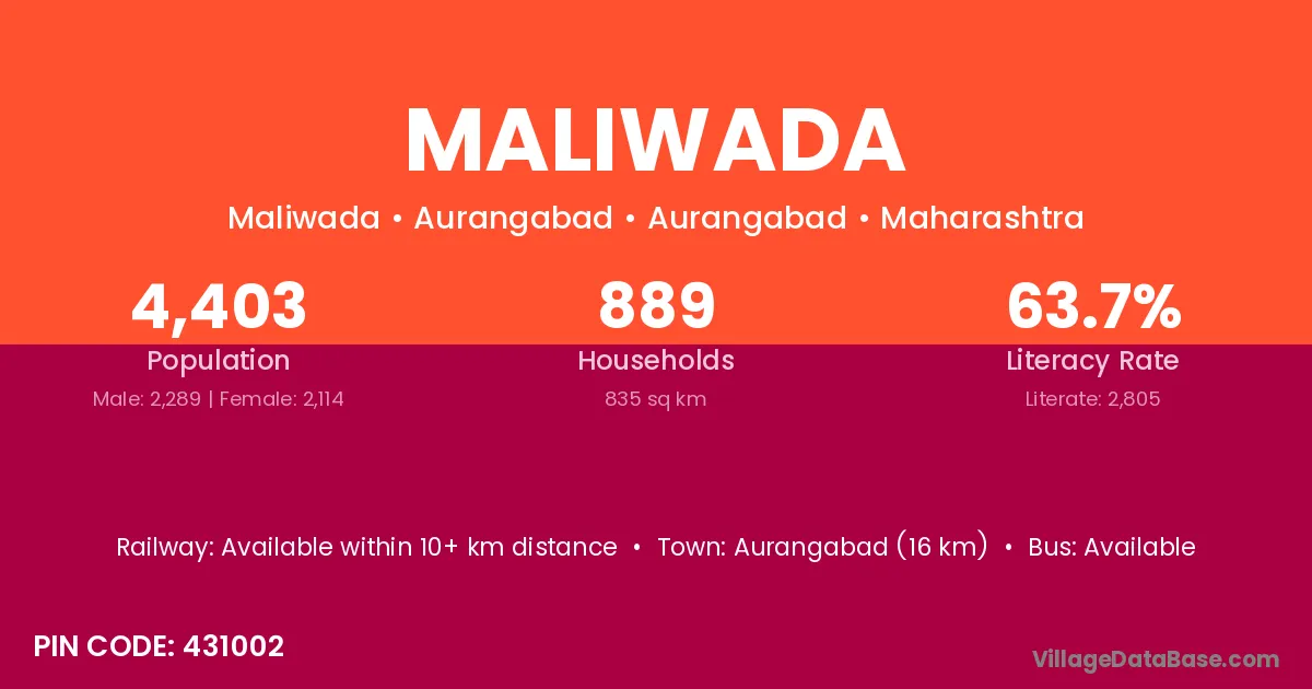 Gotegaon (11 km) is the nearest town to Maliwada village for major economic activities and is located approximately 11 km away.