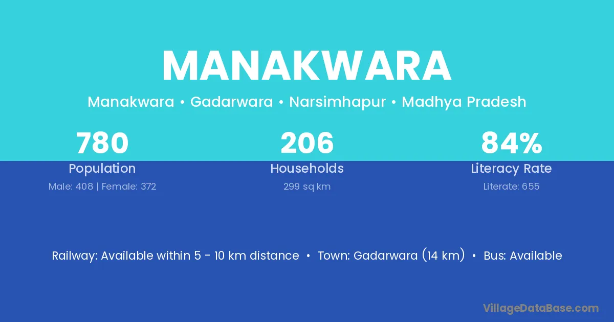 Gotegaon (12 km) is the nearest town to Manakwara village for major economic activities and is located approximately 12 km away.