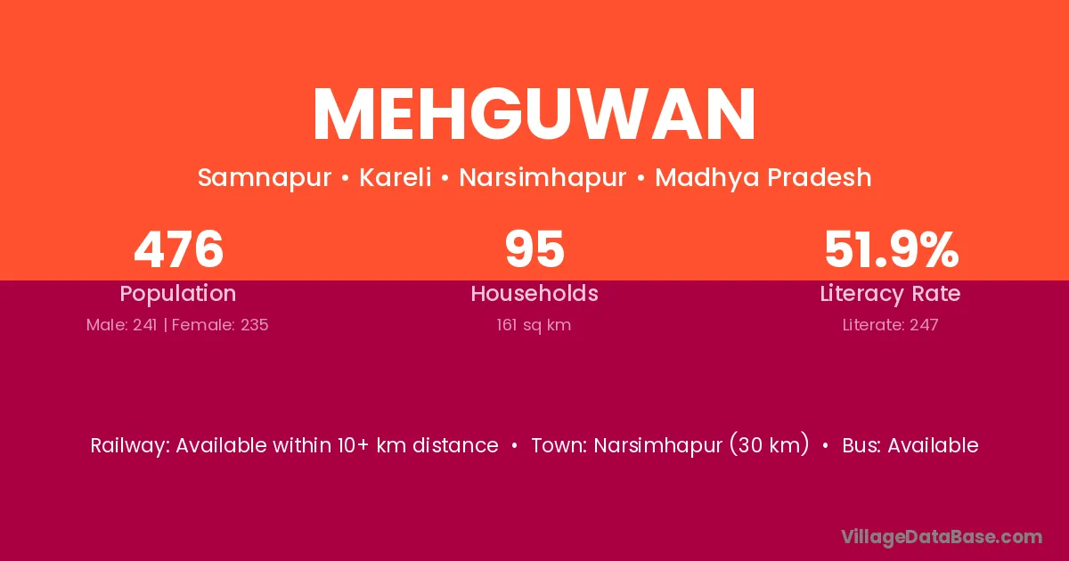 Gotegaon (14 km) is the nearest town to Mehguwan village for major economic activities and is located approximately 14 km away.