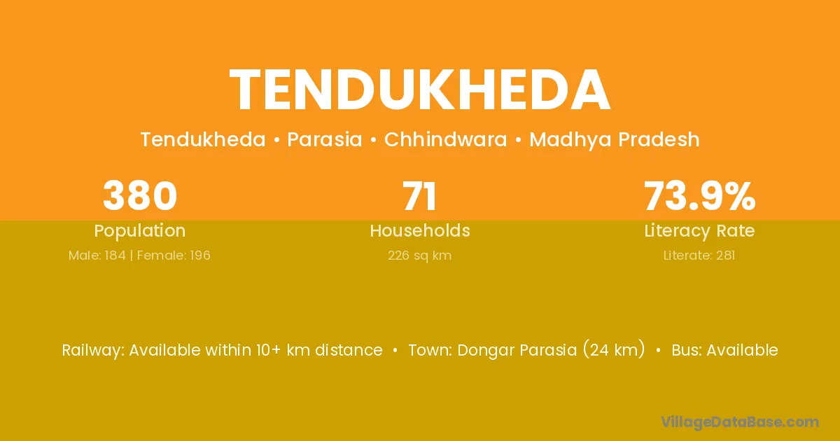 Gotegaon (19 km) is the nearest town to Tendukheda village for major economic activities and is located approximately 19 km away.