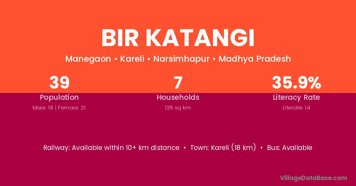 Kareli (18 km) is the nearest town to Bir Katangi village for major economic activities and is located approximately 18 km away.