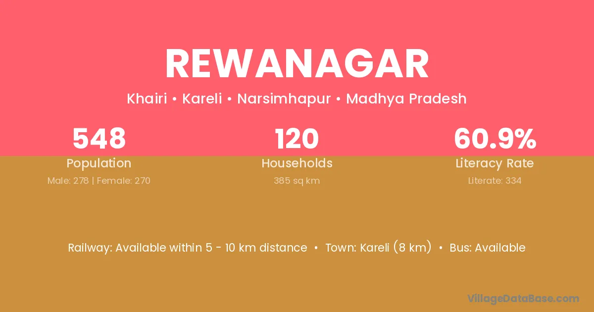 Kareli (8 km) is the nearest town to Rewanagar village for major economic activities and is located approximately 8 km away.