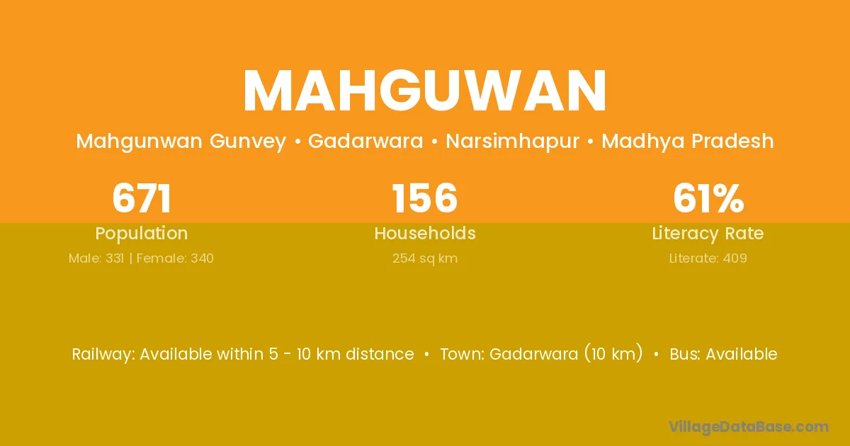 Narsimhapur is the nearest town to Mahguwan village for major economic activities