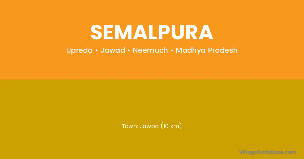 Jawad (10 km) is the nearest town to Semalpura village for major economic activities and is located approximately 10 km away.