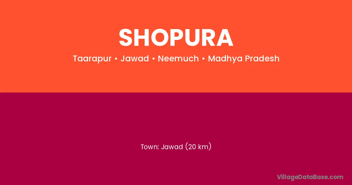Jawad (20 km) is the nearest town to Shopura village for major economic activities and is located approximately 20 km away.