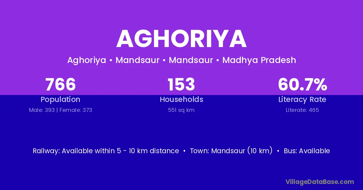 Jiran (6 km) is the nearest town to Aghoriya village for major economic activities and is located approximately 6 km away.
