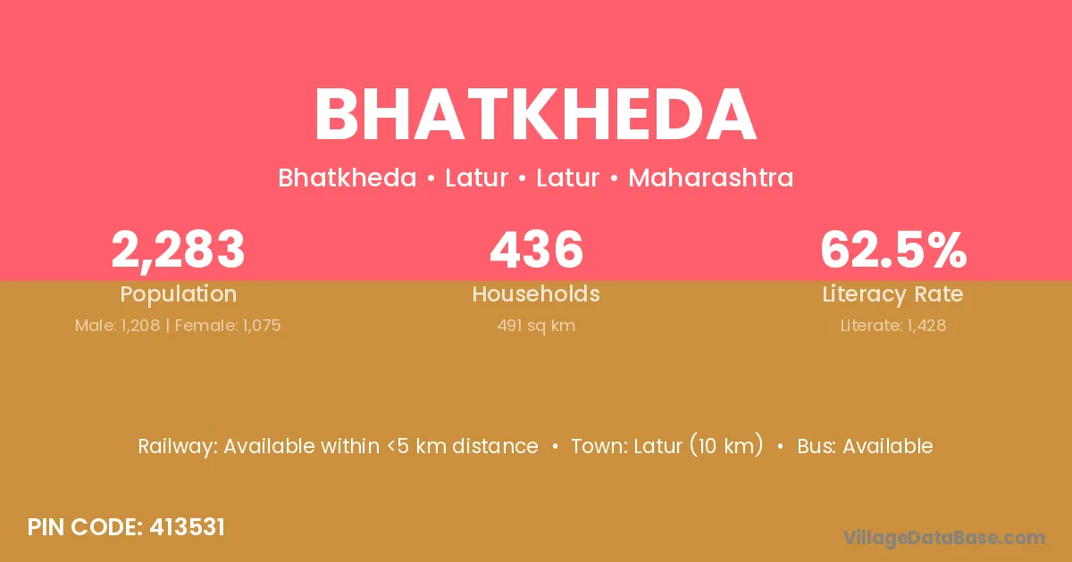 The literacy rate of Bhatkheda village is 61.43%. Male literacy stands at 73.18% and female literacy at 47.98%.