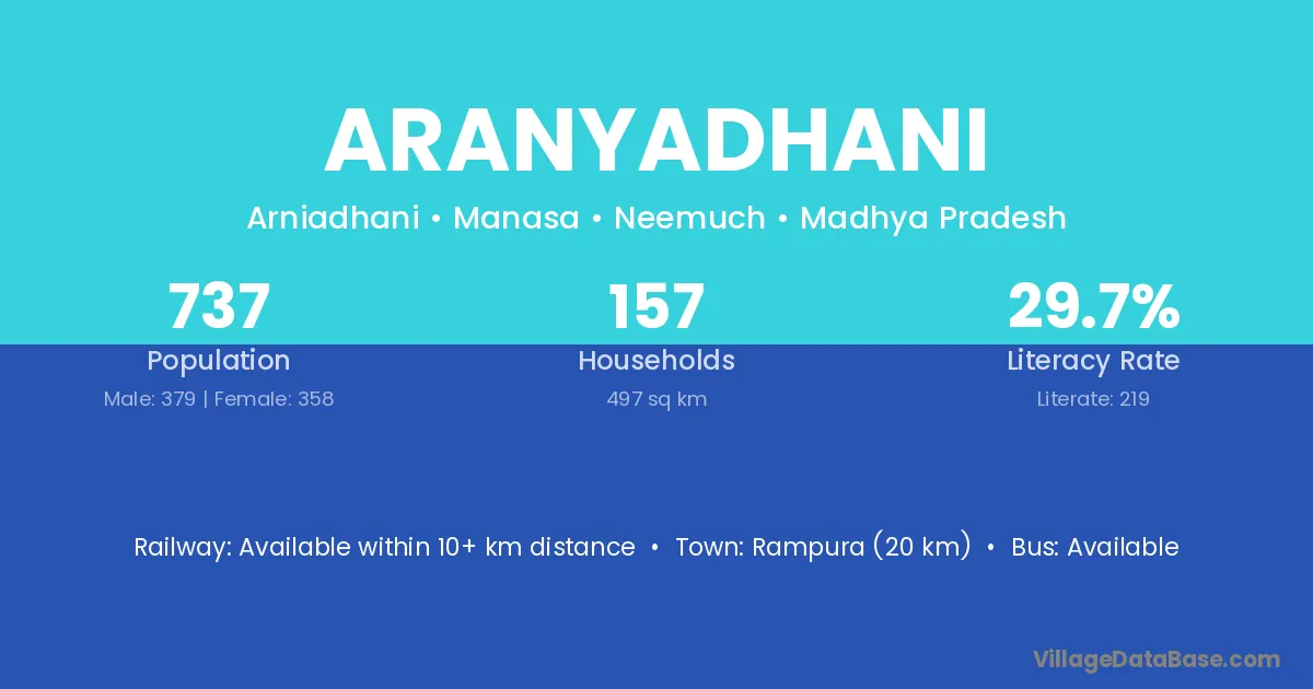 Rampura (20 km) is the nearest town to Aranyadhani village for major economic activities and is located approximately 20 km away.