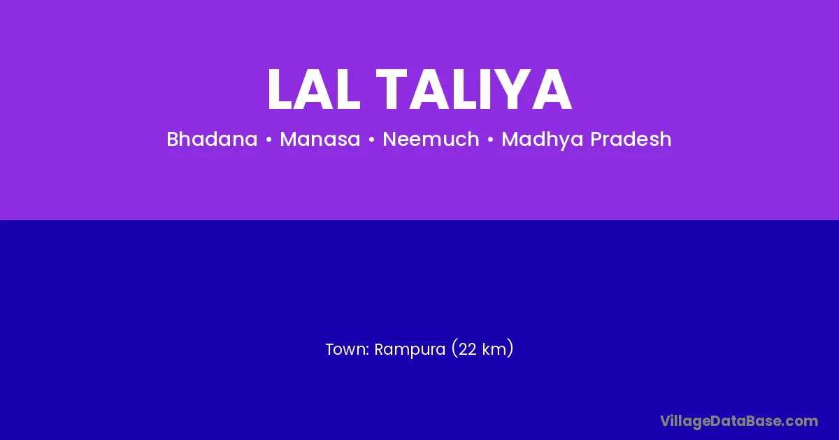 Rampura (22 km) is the nearest town to Lal Taliya village for major economic activities and is located approximately 22 km away.