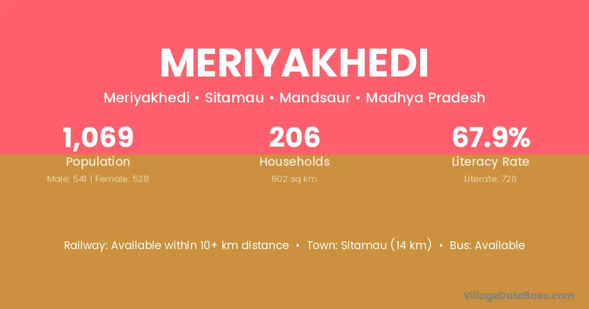 Meriyakhedi village has a total population of 447 people, of which 218 are males and 229 are females.