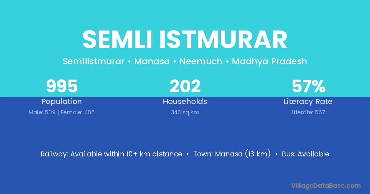 Semli Istmurar village has a total population of 995 people, of which 509 are males and 486 are females.