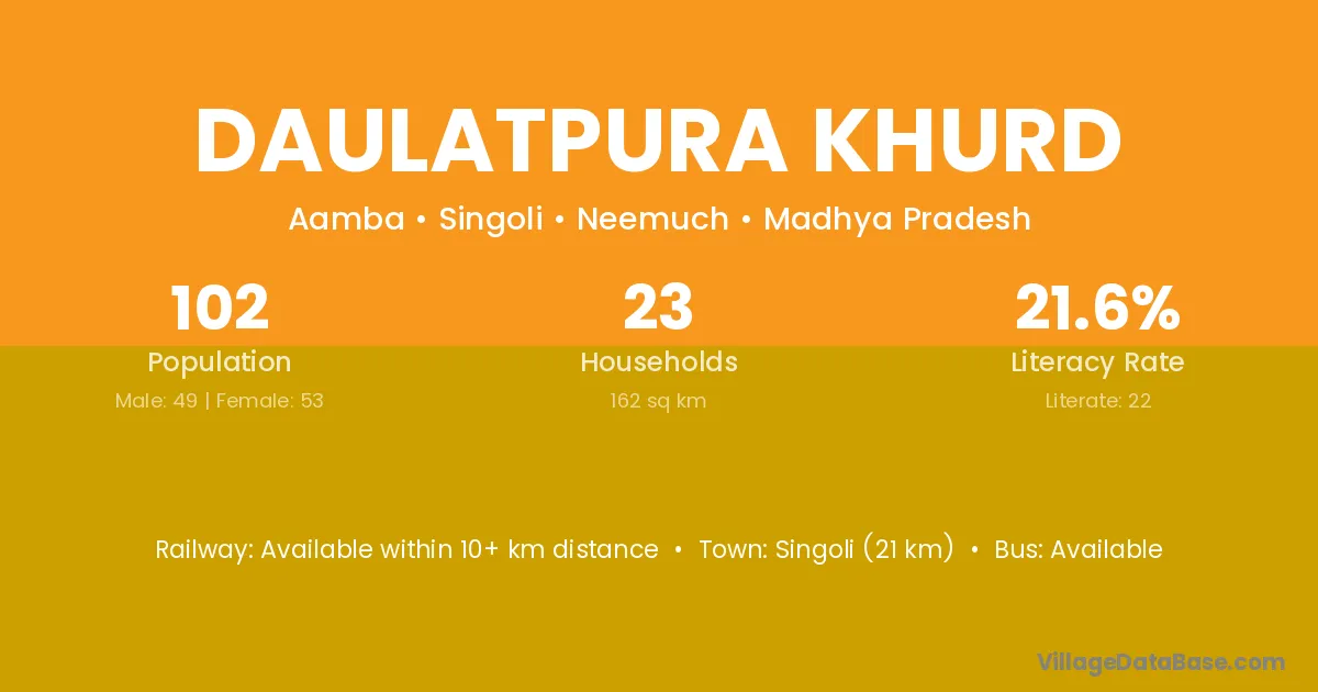 Singoli (21 km) is the nearest town to Daulatpura Khurd village for major economic activities and is located approximately 21 km away.