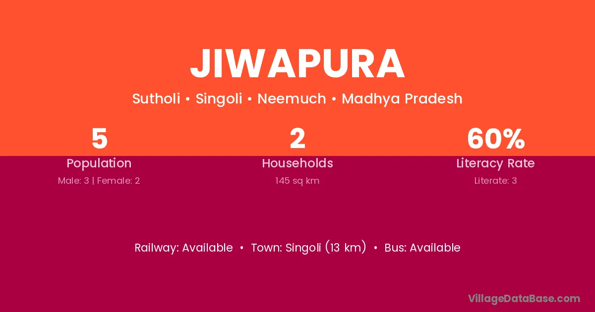 Jiwapura village has a total population of 5 people, of which 3 are males and 2 are females.