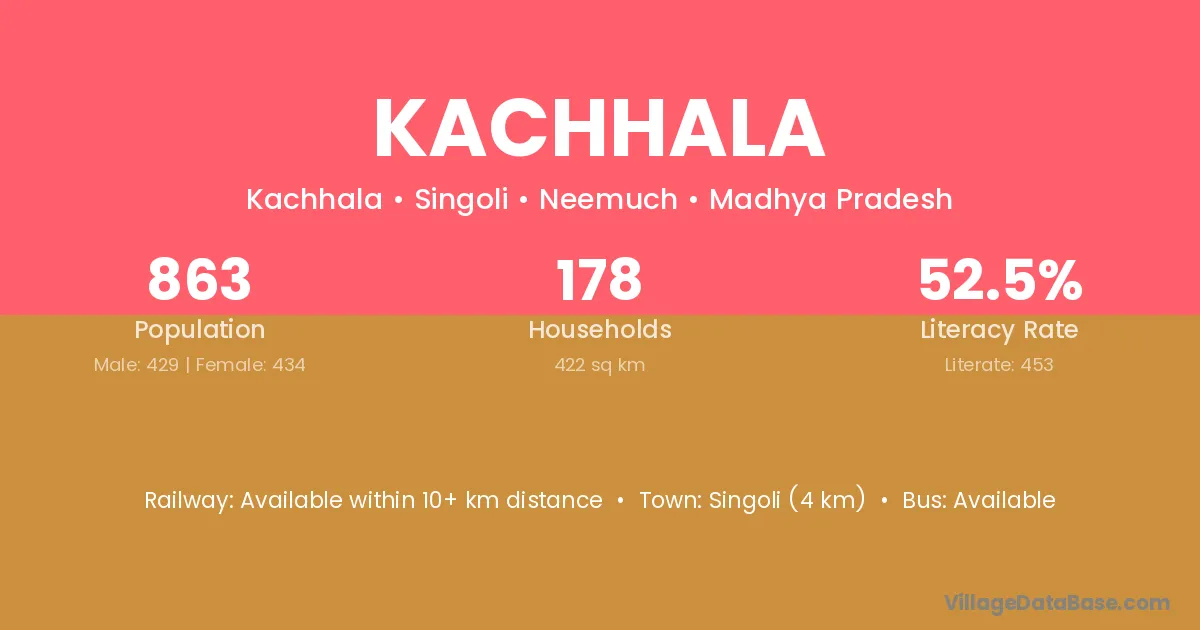 Singoli (4 km) is the nearest town to Kachhala village for major economic activities and is located approximately 4 km away.