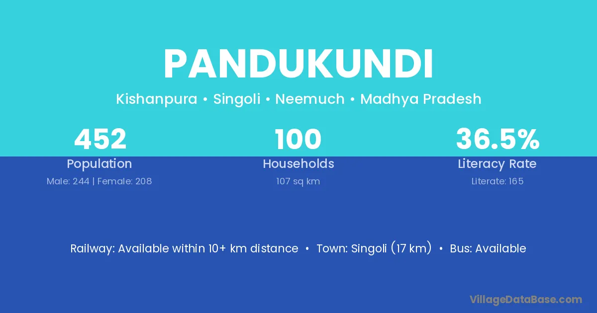 Singoli (17 km) is the nearest town to Pandukundi village for major economic activities and is located approximately 17 km away.