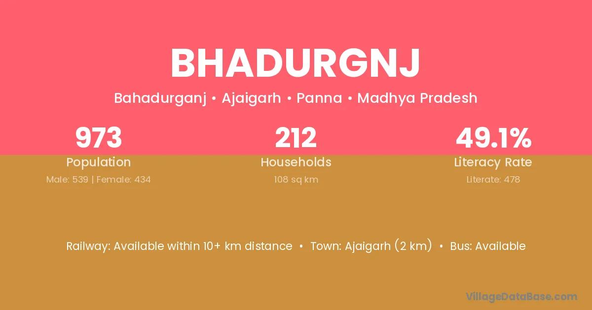 Ajaigarh (2 km) is the nearest town to Bhadurgnj village for major economic activities and is located approximately 2 km away.