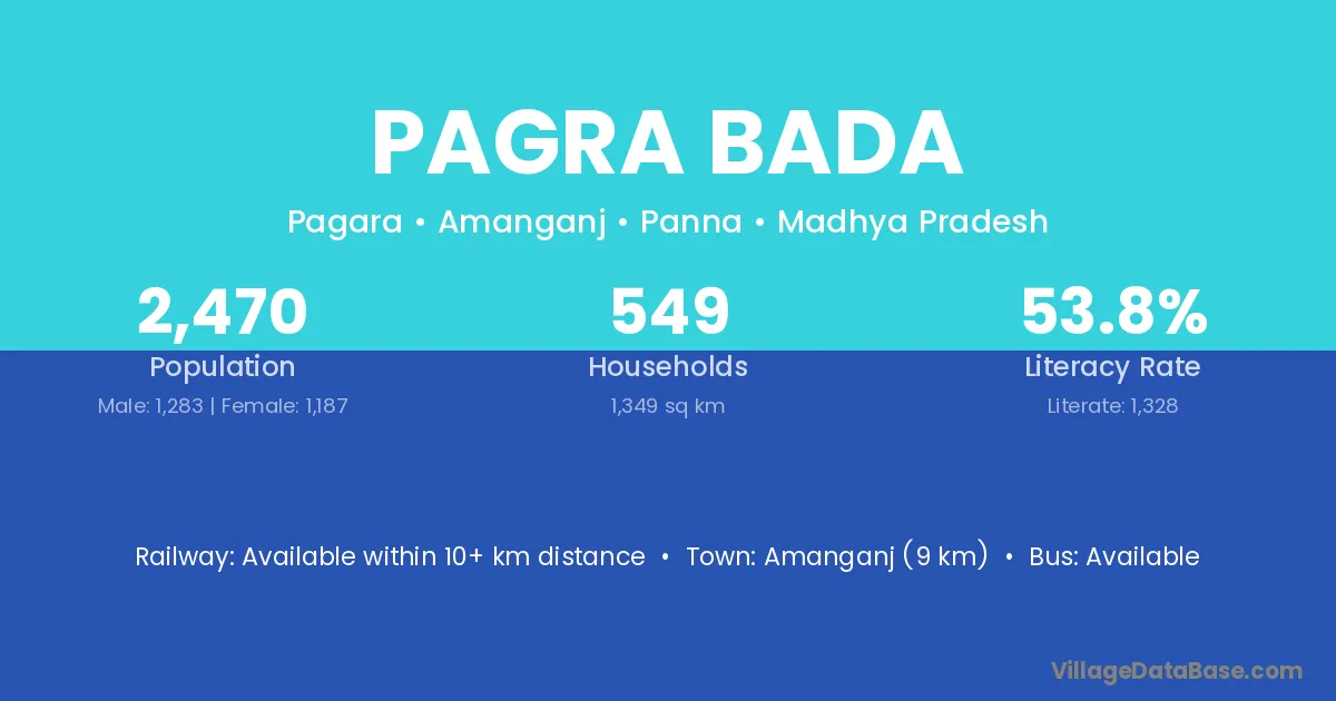 Amanganj (9 km) is the nearest town to Pagra Bada village for major economic activities and is located approximately 9 km away.