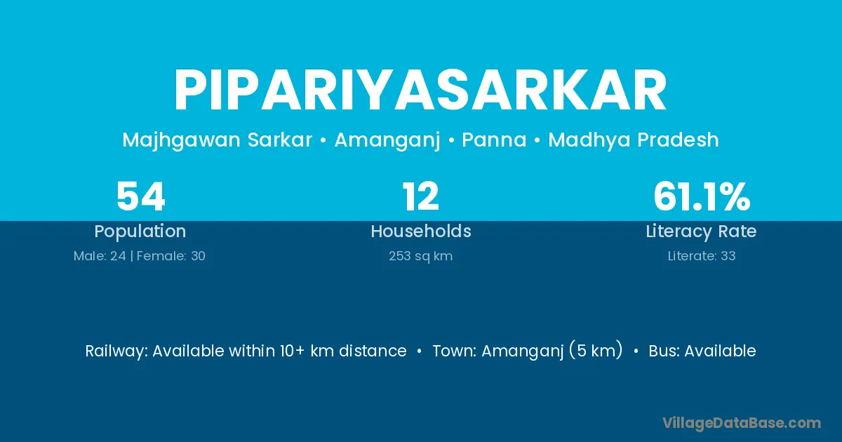 Amanganj (5 km) is the nearest town to Pipariyasarkar village for major economic activities and is located approximately 5 km away.
