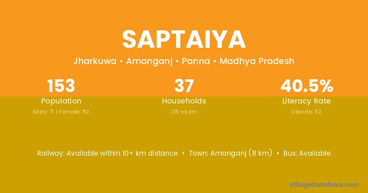 Saptaiya village has a total population of 153 people, of which 71 are males and 82 are females.