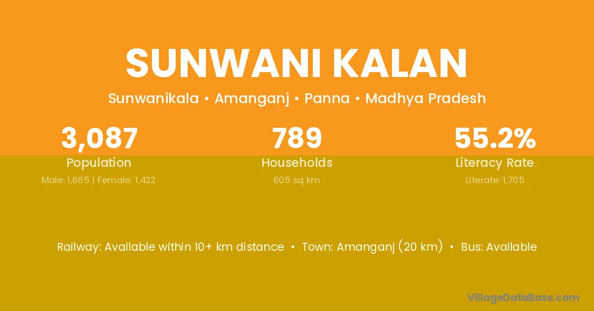 Amanganj (20 km) is the nearest town to Sunwani Kalan village for major economic activities and is located approximately 20 km away.