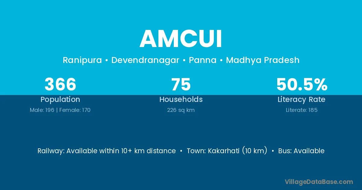 Amcui village has a total population of 366 people, of which 196 are males and 170 are females.