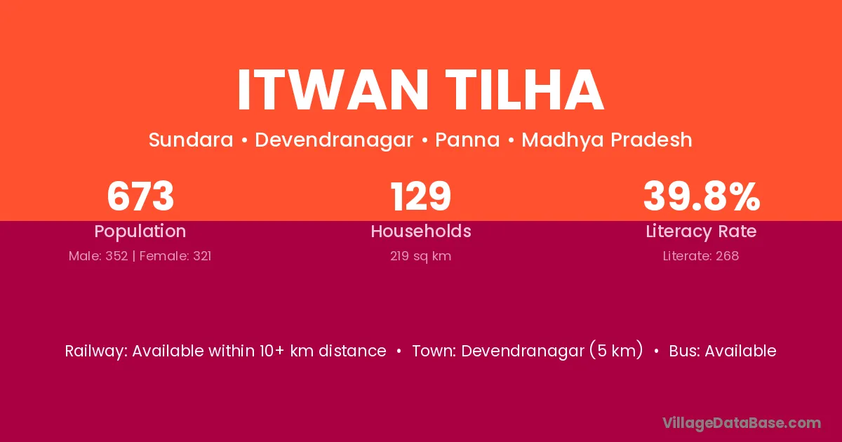 Itwan Tilha village has a total population of 673 people, of which 352 are males and 321 are females.