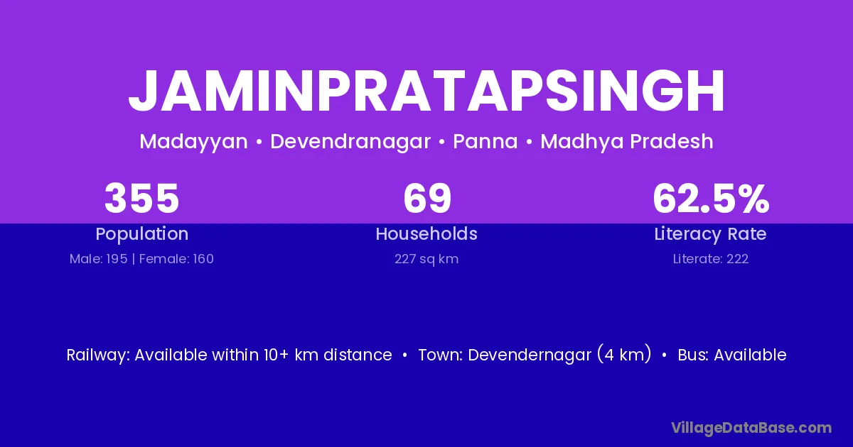 Devendernagar (4 km) is the nearest town to Jaminpratapsingh village for major economic activities and is located approximately 4 km away.