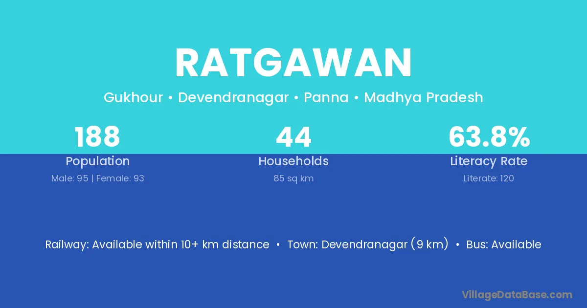 Ratgawan village has a total population of 188 people, of which 95 are males and 93 are females.