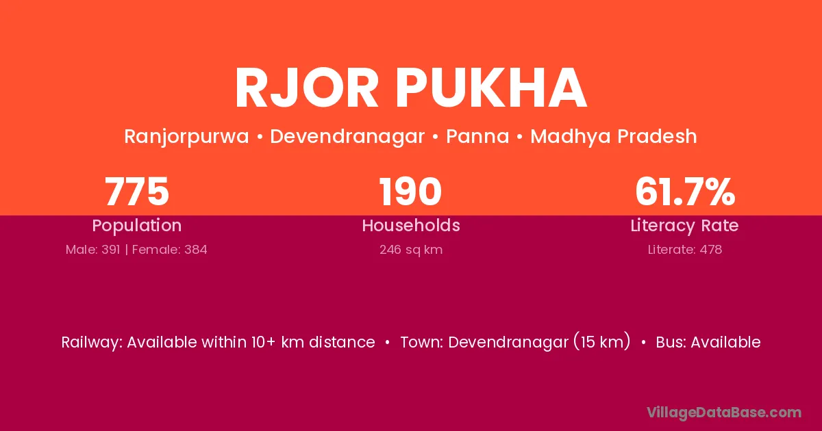 Devendranagar (15 km) is the nearest town to Rjor Pukha village for major economic activities and is located approximately 15 km away.