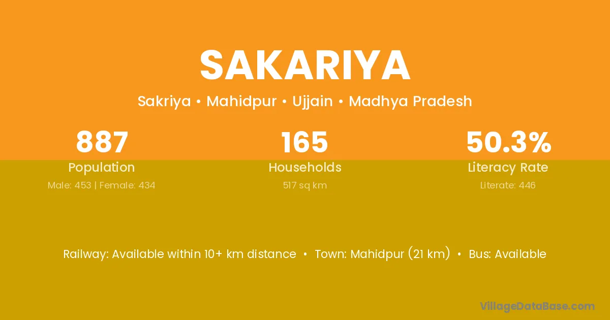 Devendernagar (10 km) is the nearest town to Sakariya village for major economic activities and is located approximately 10 km away.