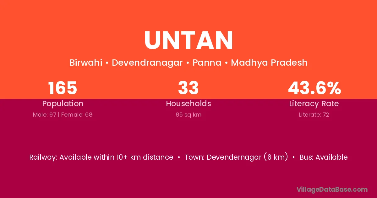 Devendernagar (6 km) is the nearest town to Untan village for major economic activities and is located approximately 6 km away.