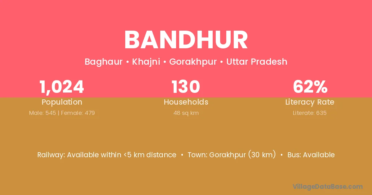 Bandhur village has a total population of 867 people, of which 433 are males and 434 are females.