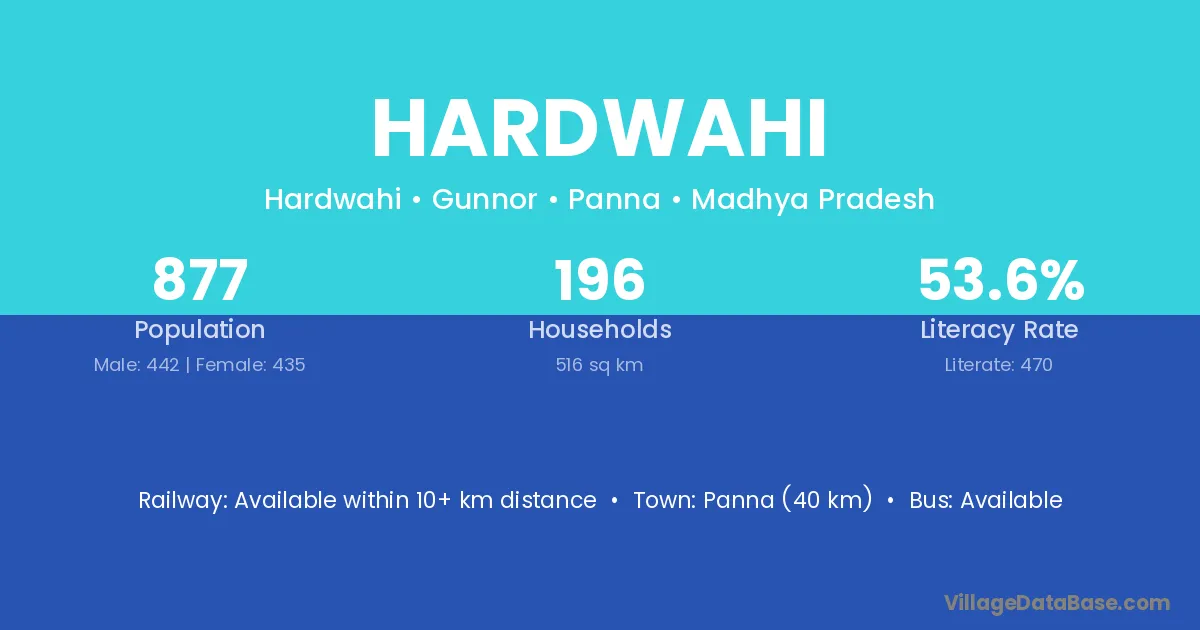 Panna (40 km) is the nearest town to Hardwahi village for major economic activities and is located approximately 40 km away.