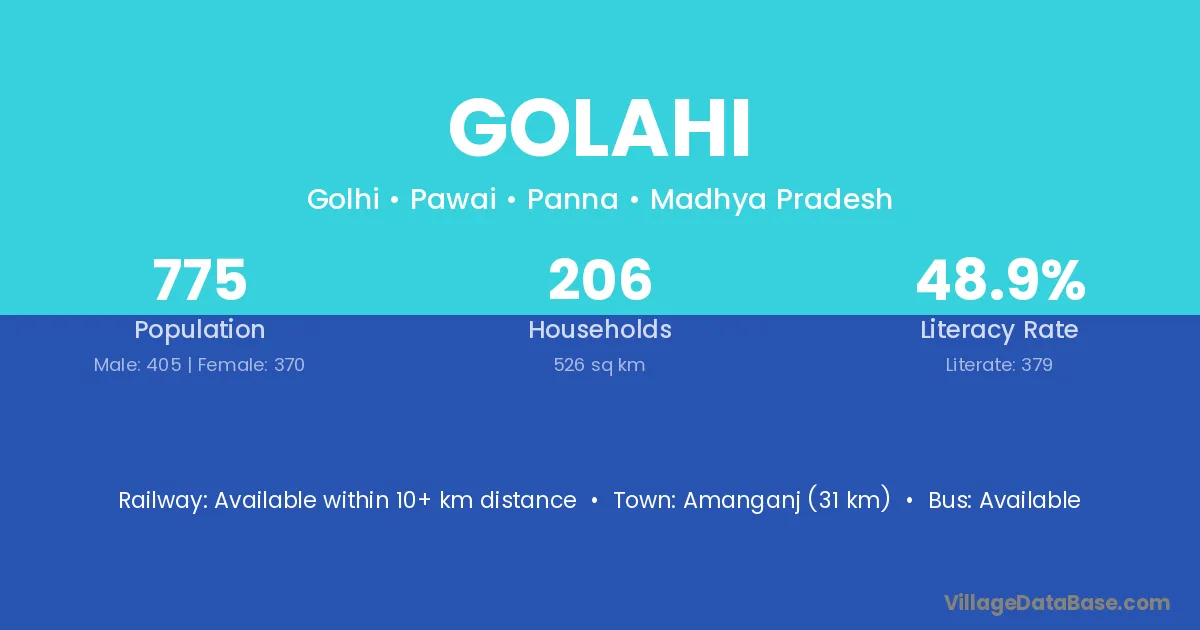 Amanganj (31 km) is the nearest town to Golahi village for major economic activities and is located approximately 31 km away.