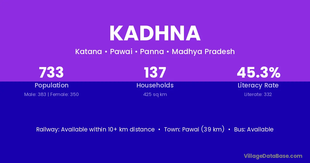 Pawai (39 km) is the nearest town to Kadhna village for major economic activities and is located approximately 39 km away.