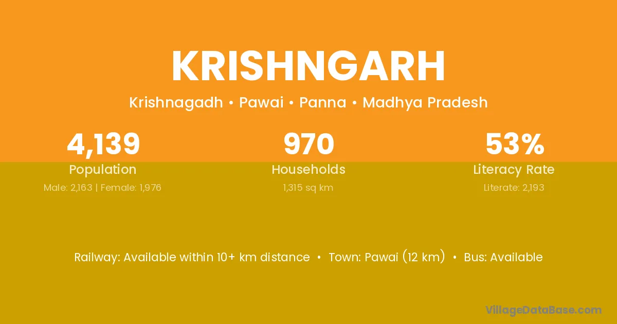 Pawai (12 km) is the nearest town to Krishngarh village for major economic activities and is located approximately 12 km away.