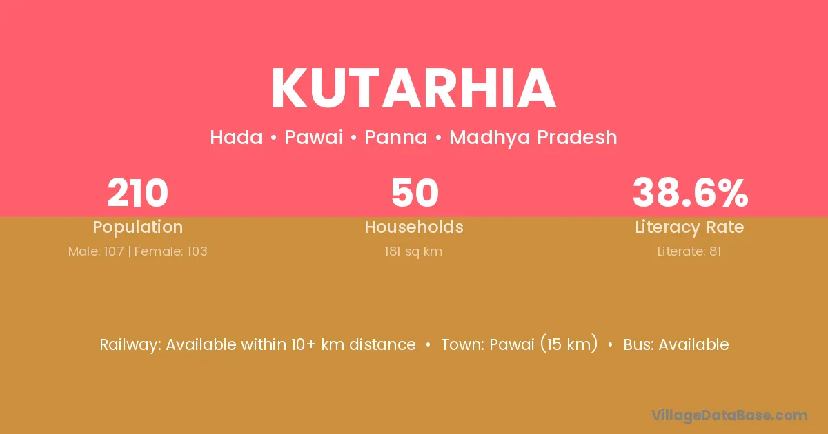 Kutarhia village has a total population of 210 people, of which 107 are males and 103 are females.