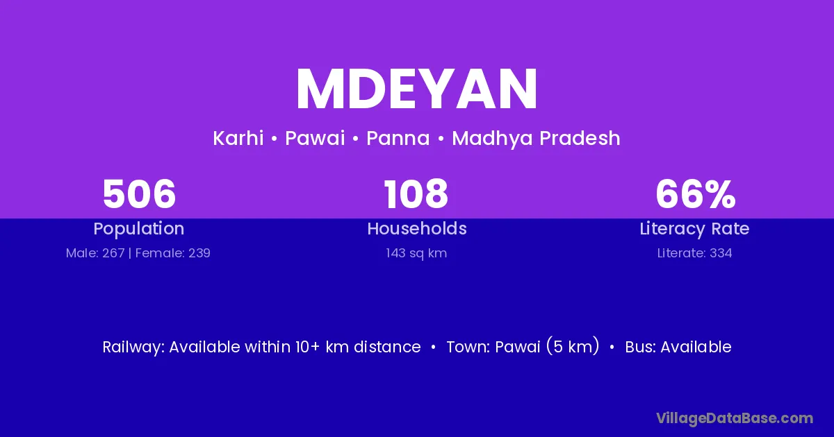 Mdeyan village is located in the Pawai Tehsil of the Panna district in Madhya Pradesh .