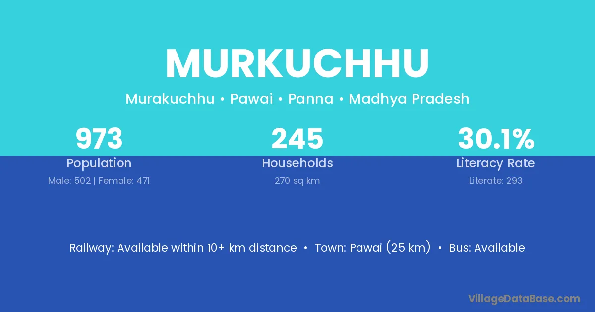 Murkuchhu village has a total population of 973 people, of which 502 are males and 471 are females.