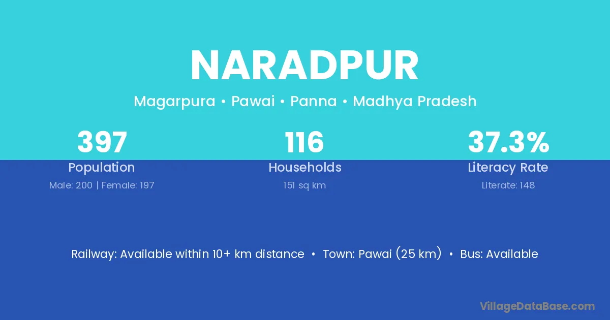 Pawai (25 km) is the nearest town to Naradpur village for major economic activities and is located approximately 25 km away.