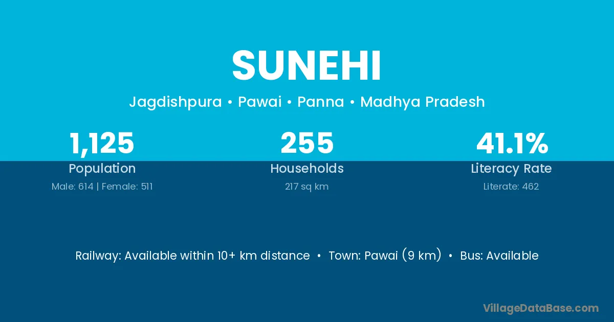Pawai (9 km) is the nearest town to Sunehi village for major economic activities and is located approximately 9 km away.